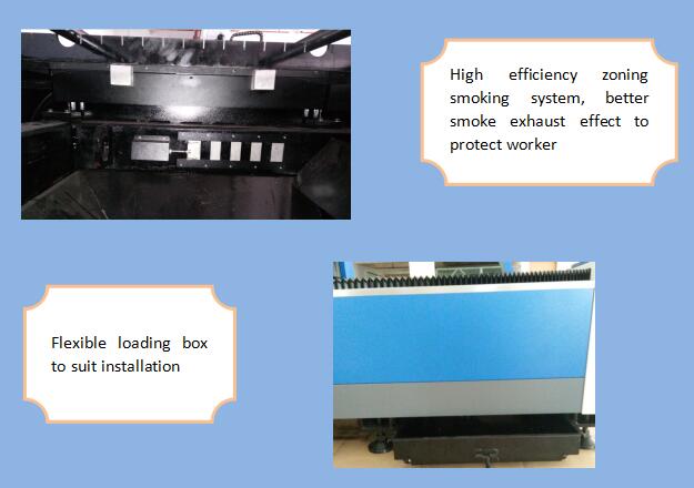 3. Système de fumage de zonage à haute efficacité sur les deux côtés du corps de la machine, collecte de la poussière segmentée et du fumage, réduira les dommages pour le travailleur.