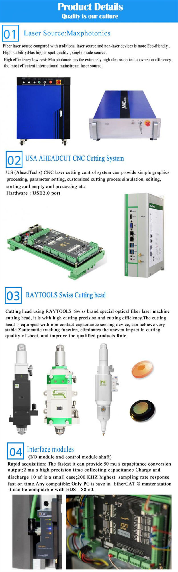 La machine est avec fibre laser importée, base de granit naturel, moteur servo importé, structure de plate-forme croisée de haute précision.